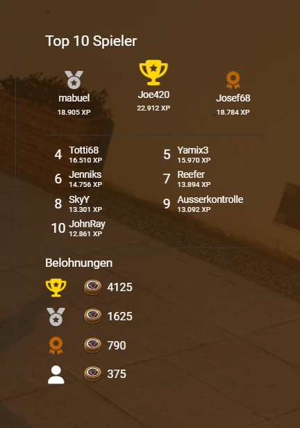 - Die Top 10 Spieler aus dem letzten Season Pass haben ihre Belohnung erhalten.