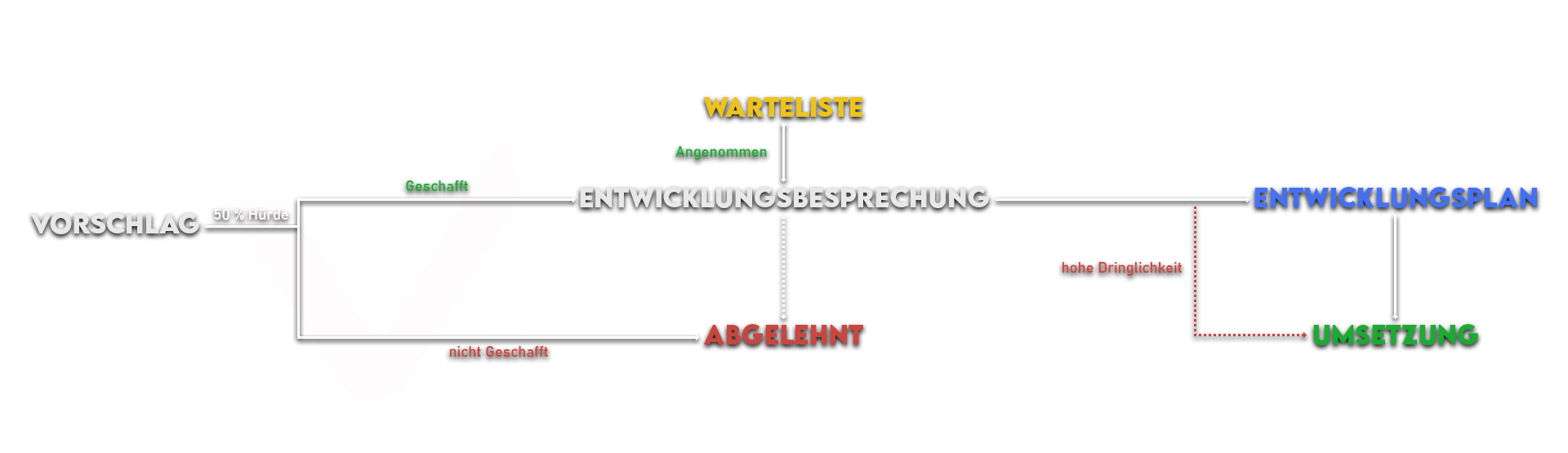 ist eine Besprechung, welche aktuelle Vorschläge bearbeitet und sie anschließend zu fertigen Konzepten ausformuliert. Außerdem entscheidet die Entwicklungsbesprechung zusammen mit der Projektleitung darüber, welche Updateinhalte im nächsten Update umgesetzt werden sollen & welche Dringlichkeit sie haben. An dieser Besprechung nehmen alle Vertreter des Government teil.