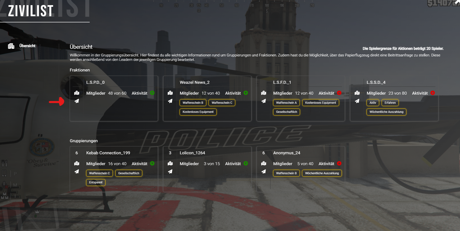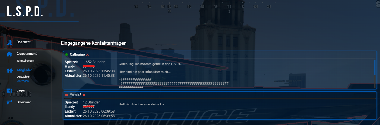 • Alle Spieler können nun im Gruppenmenü eine Kontaktanfrage an Gruppen senden (max. 3000 Zeichen).