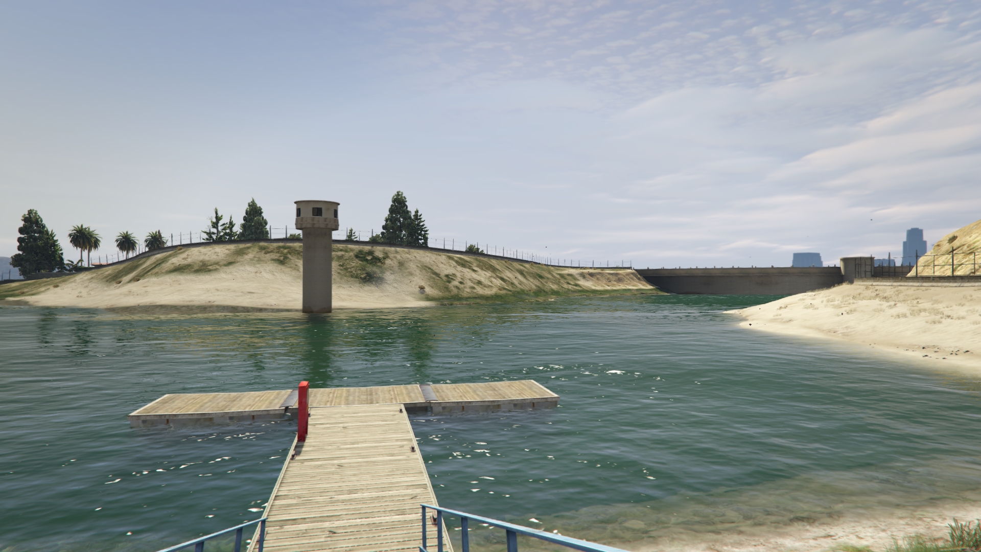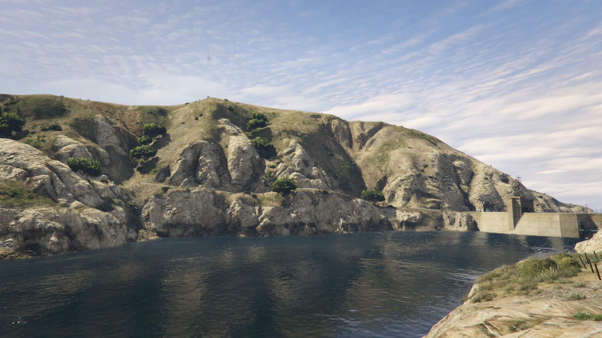 Den Vinewood Lake Dam. Dieser künstlich angelegte See ist nördlich von Vinewood zu finden und ist umgeben von den Vinewood Hills.