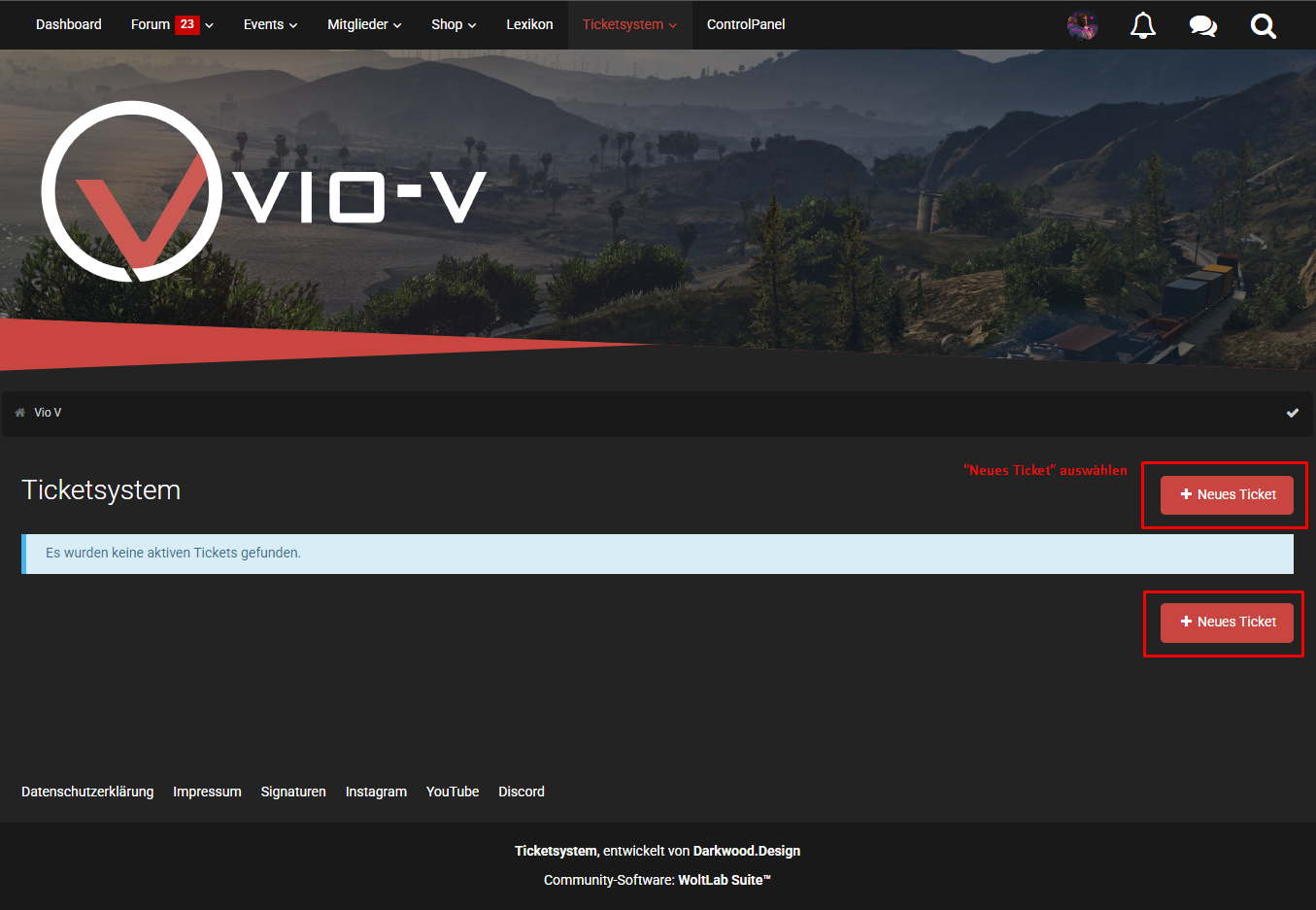 Schritt 4: Sobald du dich im Ticketsystem befindest, betätigst du dort die Schaltfläche Neues Ticket.