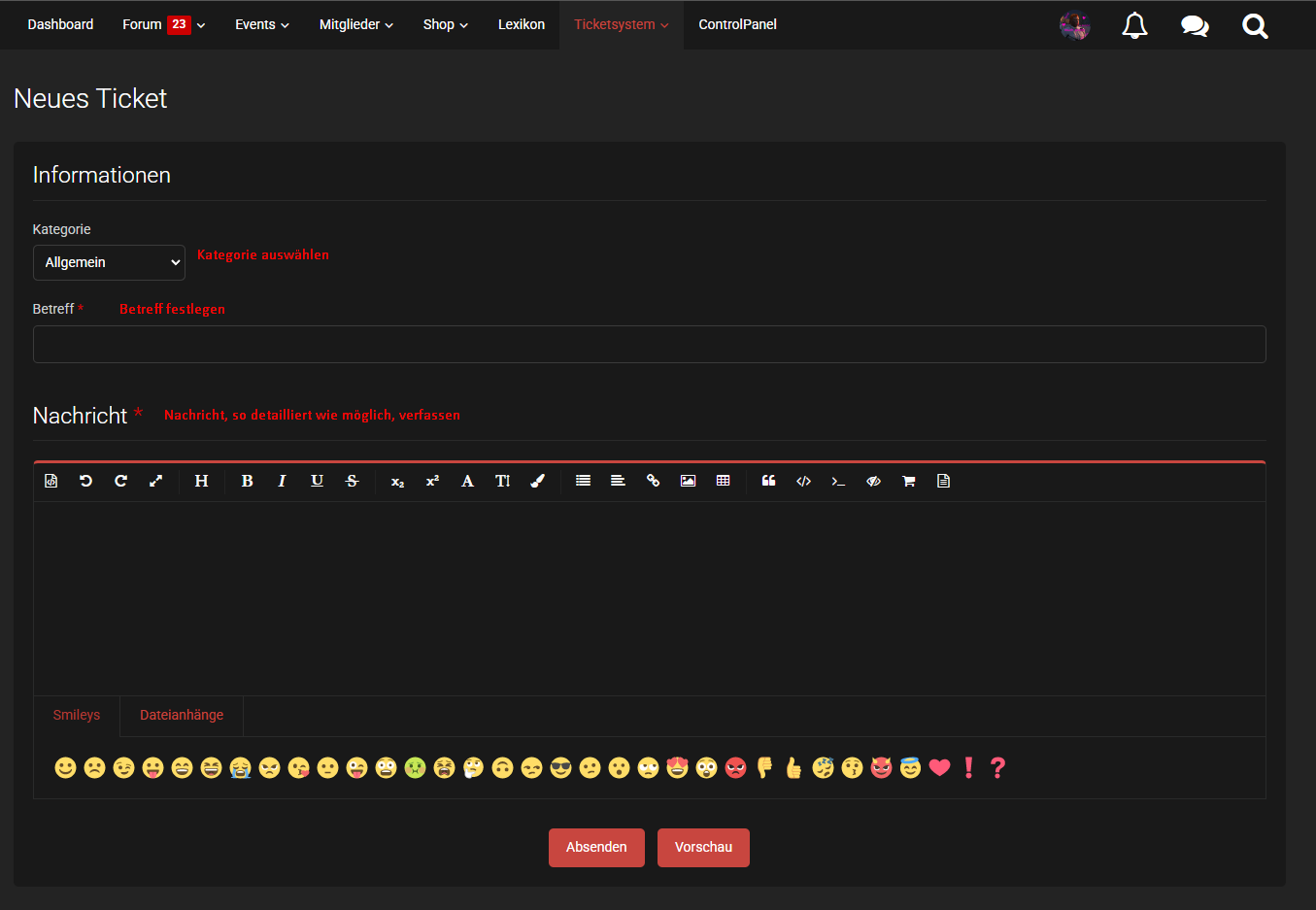 Das Ticketsystem gibt dir die Möglichkeit direkten Kontakt zu unserem Supportern aufzubauen. Das Verfahren ist unkompliziert und schnell verstanden.