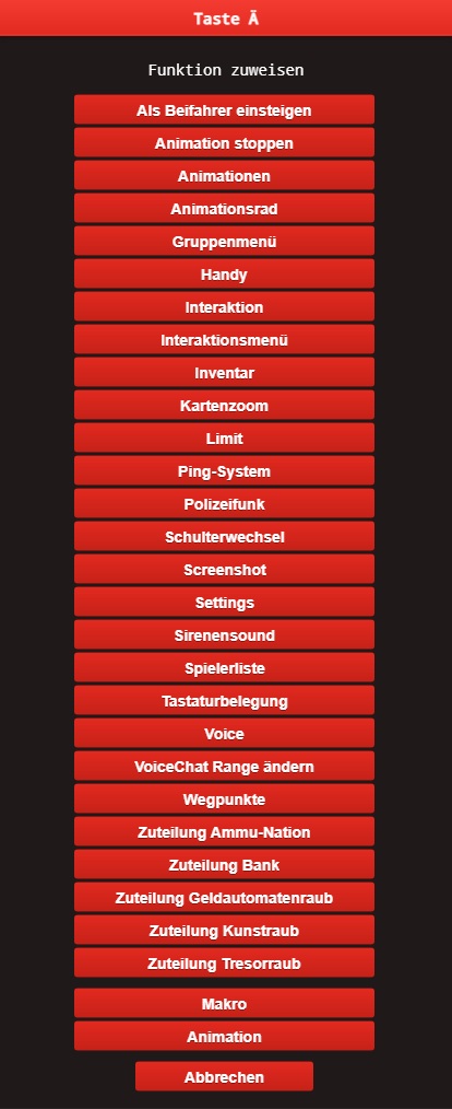 In dem Menü ist das Tastaturfeld zu sehen, welches genutzt werden kann, um bestimmte Funktionen bestimmten Tasten zuzuordnen.