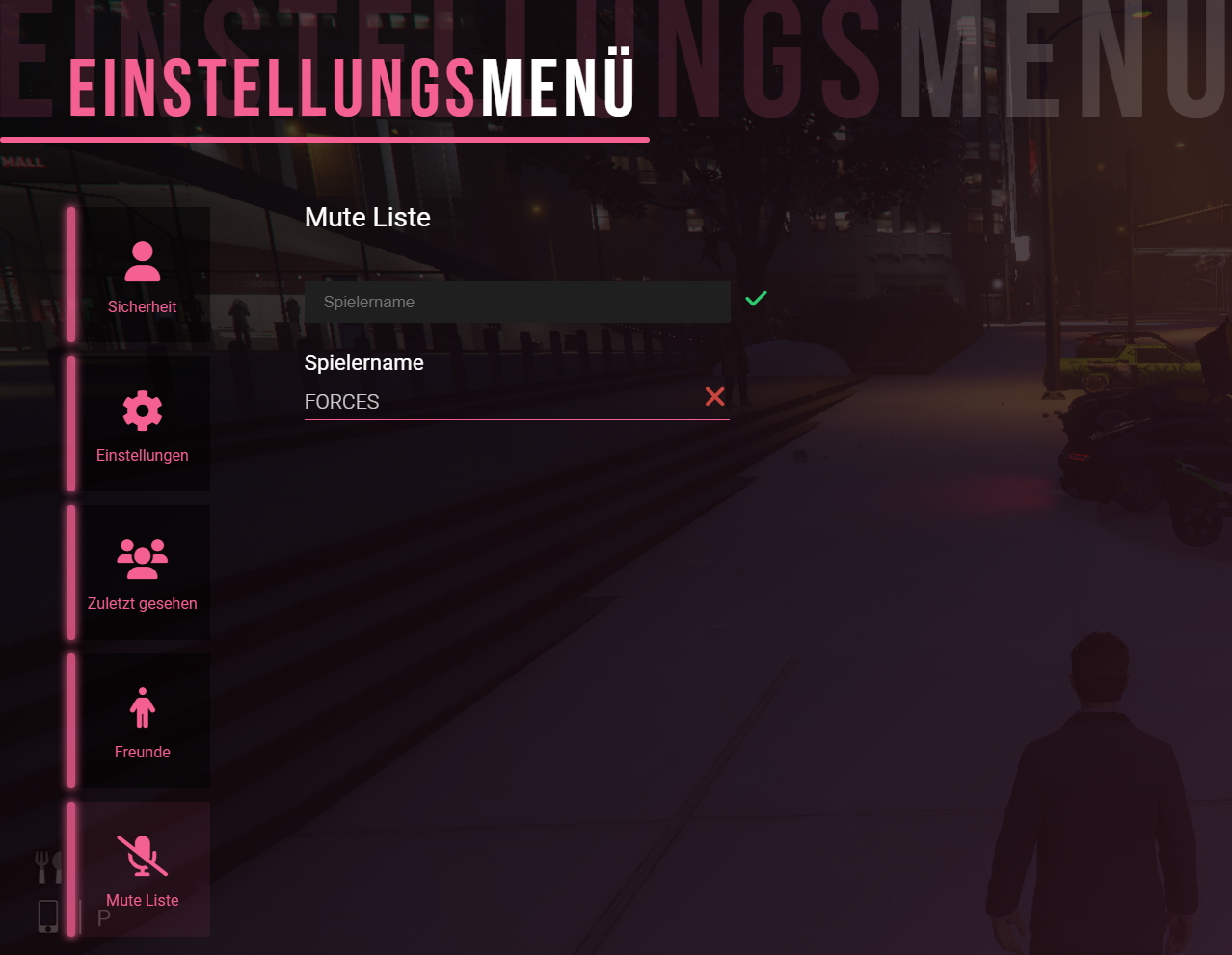 Die Mute-Funktion ermöglicht es dir, störende Spieler auf eine Muteliste zu setzen. Um einen Spieler hinzuzufügen, öffne zunächst mit F3 das Einstellungsmenü und wechsle anschließend zum Reiter „Muteliste“. Gib dort den gewünschten Spielernamen ein und bestätige deine Eingabe mit dem grünen Haken.