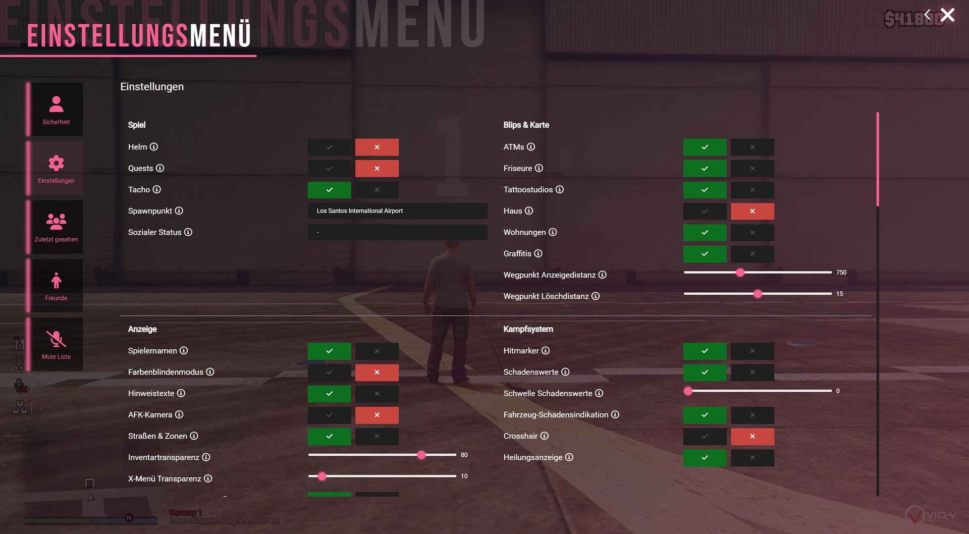 | Überweisungs-Benachrichtigung | Steuert, ob du eine Chatmeldung und einen Hinweiston erhältst, wenn dir ein anderer Spieler Geld überweist. Wenn deaktiviert, werden keine Hinweise angezeigt. |