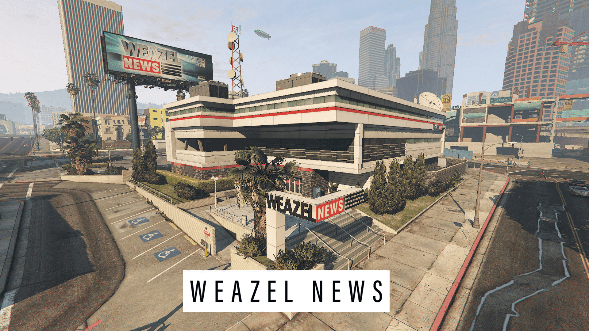 Das Unternehmen Weazel News ist für den Journalismus, als auch für die Werbung im Bundesstaat Los Santos zuständig. Der Hauptsitz des Unternehmens befindet sich im Weazel News HQ im Bezirk Little Seoul in Los Santos. Auf der Karte ist das Weazel News HQ mit einer Kamera gekennzeichnet. Die Weazel News sind eine neutrale Fraktion, außerdem besteht kein "Duty-System". Man ist dauerhaft im Dienste eines Reporters.