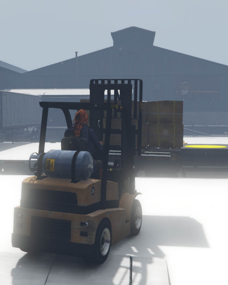 Das erste Level beschäftigt sich zunächst mit dem Transport von Paletten mit einem Gabelstapler. Je nach Zufall muss entweder ein ankommender LKW beladen oder aber auch entladen werden. Je drei Paletten müssen be- oder entladen werden, um EXP und Dollar zu erhalten. Der Gabelstapler lässt sich mit den Tasten STRG + Shift oder Numpad 5 + 8 steuern. Um den Job zu beenden, steigst du einfach mit F aus. |