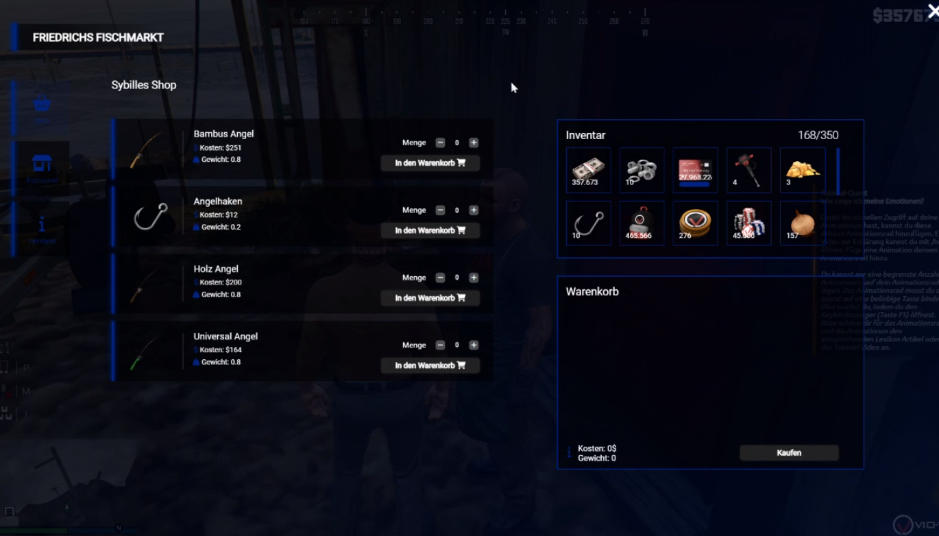 Der Angelshop liegt am Alamosee. Dort kann man sich verschiedene Angelruten und Angelhaken kaufen. Der Preis variiert von Tag zu Tag. Man kann sich mehrere Angelruten und Angelhaken kaufen, da nach einer gewissen Zeit die Angelrute bricht und auch Angelhaken verloren gehen.