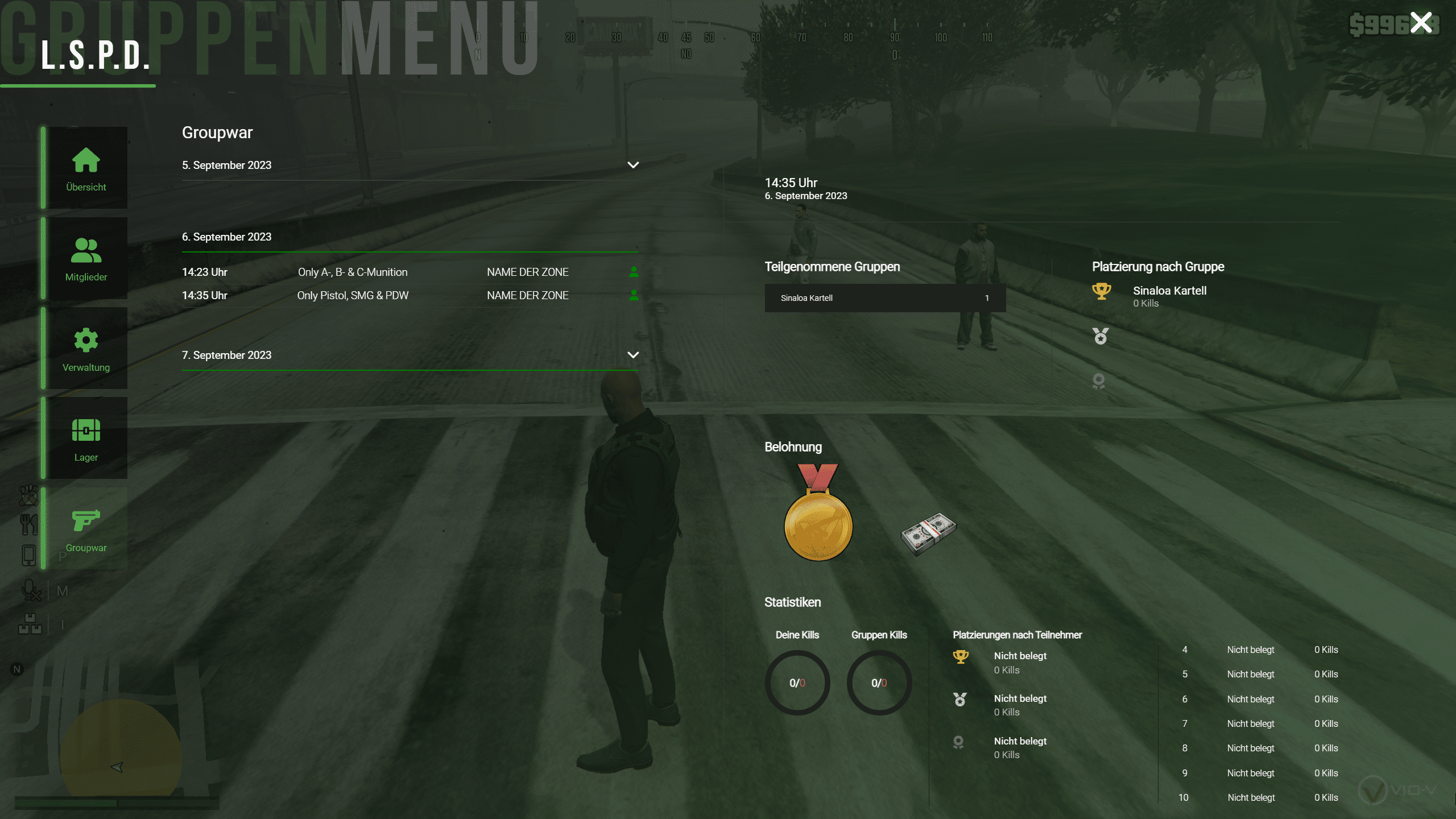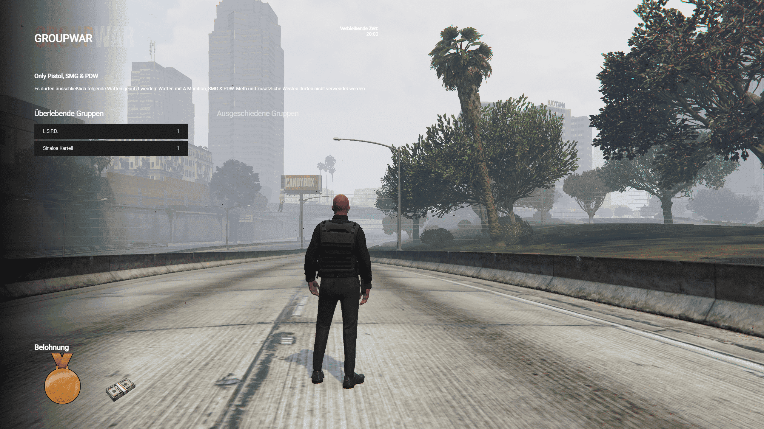 - Während eines laufenden Groupwars sind folgende Aktionen nicht startbar: Gangwar, Bankraub, Ammunation Raub, Humane Labs Raub, F.I.B.-Raub & Kunstraub