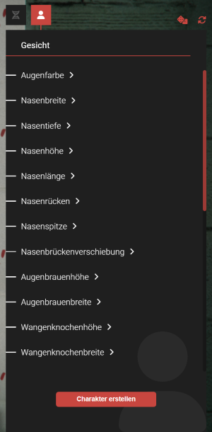 Im zweiten Abschnitt "Gesicht" werden dir sämtliche Anpassungsmöglichkeiten für die Gesichtsmerkmale deines Charakters geboten.