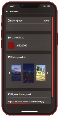 - Handygröße: Über den Schieberegler kannst du die Größe des Handys bestimmen.