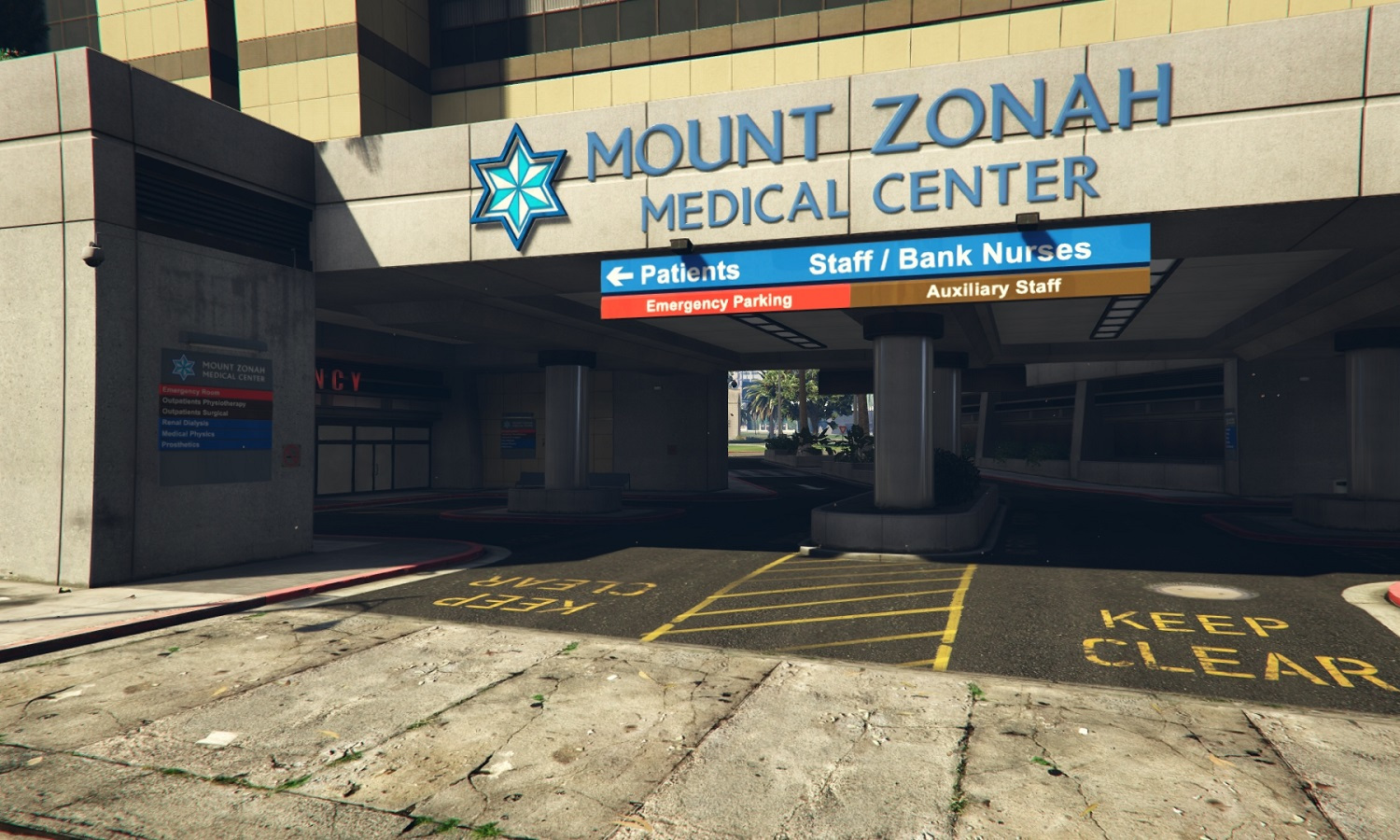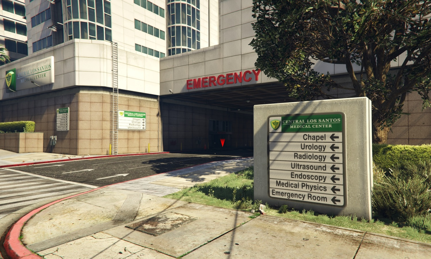 Neben der Hauptbasis des L.S.F.D. gibt es zusätzlich noch fünf weitere Krankenhäuser, welche von den Sanitätern angefahren und benutzt werden können. Jeder Bürger hat mit dem Betreten von dem roten Marker an jedem Krankenhaus die Möglichkeit, sich von einem Arzt behandeln zu lassen. Dies kostet $75 und stellt 100 % aller Lebenspunkte wieder her.