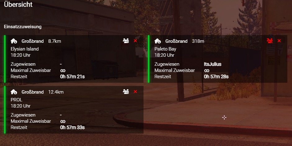 Sobald der Einsatz erfolgreich beendet wurde, könnt ihr den Einsatz löschen, indem ihr auf das rote X klickt.