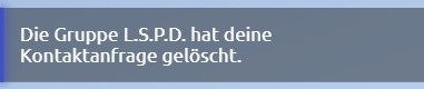 | Spieler | Wenn die Gruppe eine eingegangene Kontaktanfrage gelöscht hat. | |