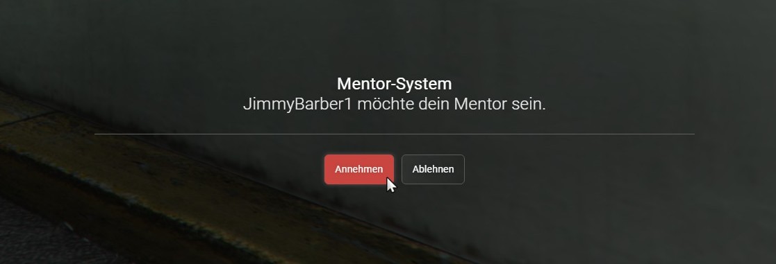 Wenn du als Neuling neu auf den Server kommst und das erste Mal spawnst, erhältst du automatisch eine Benachrichtigung, dass aktuell verfügbare Mentoren online sind.