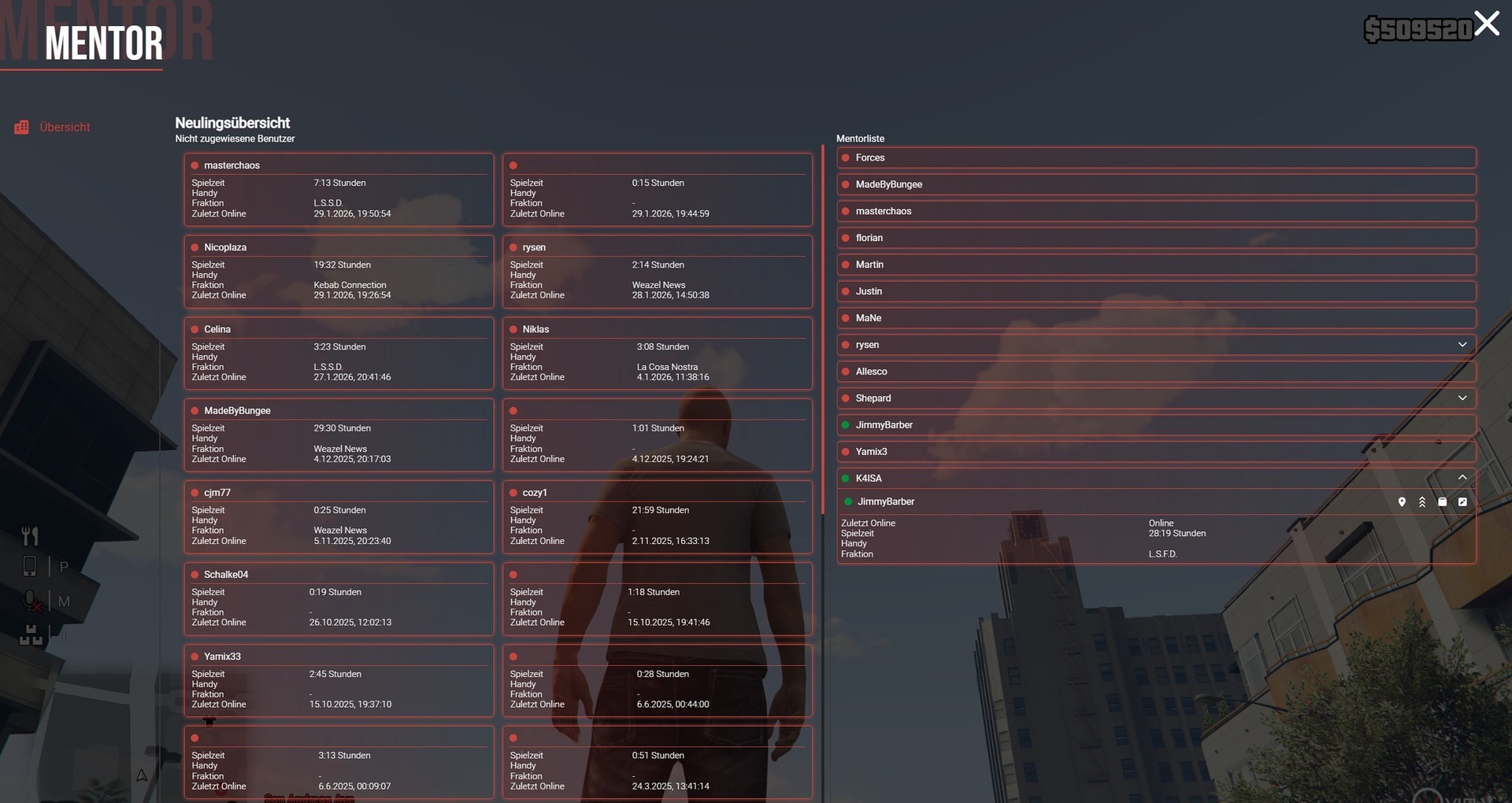 In der Mentorliste erhält man eine vollständige Übersicht über alle Mentoren und deren aktuell zugewiesene Neulinge. Zu jedem Neuling werden auch hier alle relevanten Informationen angezeigt. Das Level des Neulings wird hier auch angezeigt.