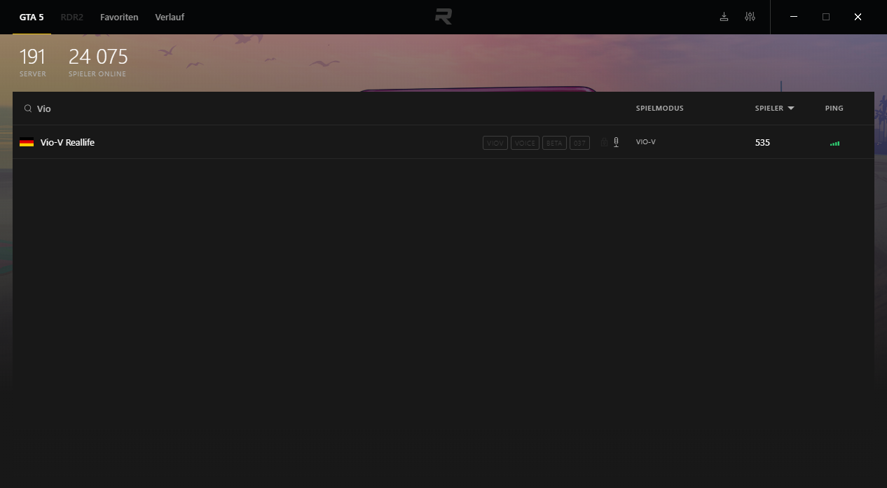Nun kannst du in der Serverliste oder per Suchfenster nach Vio suchen, um unseren Server zu finden.