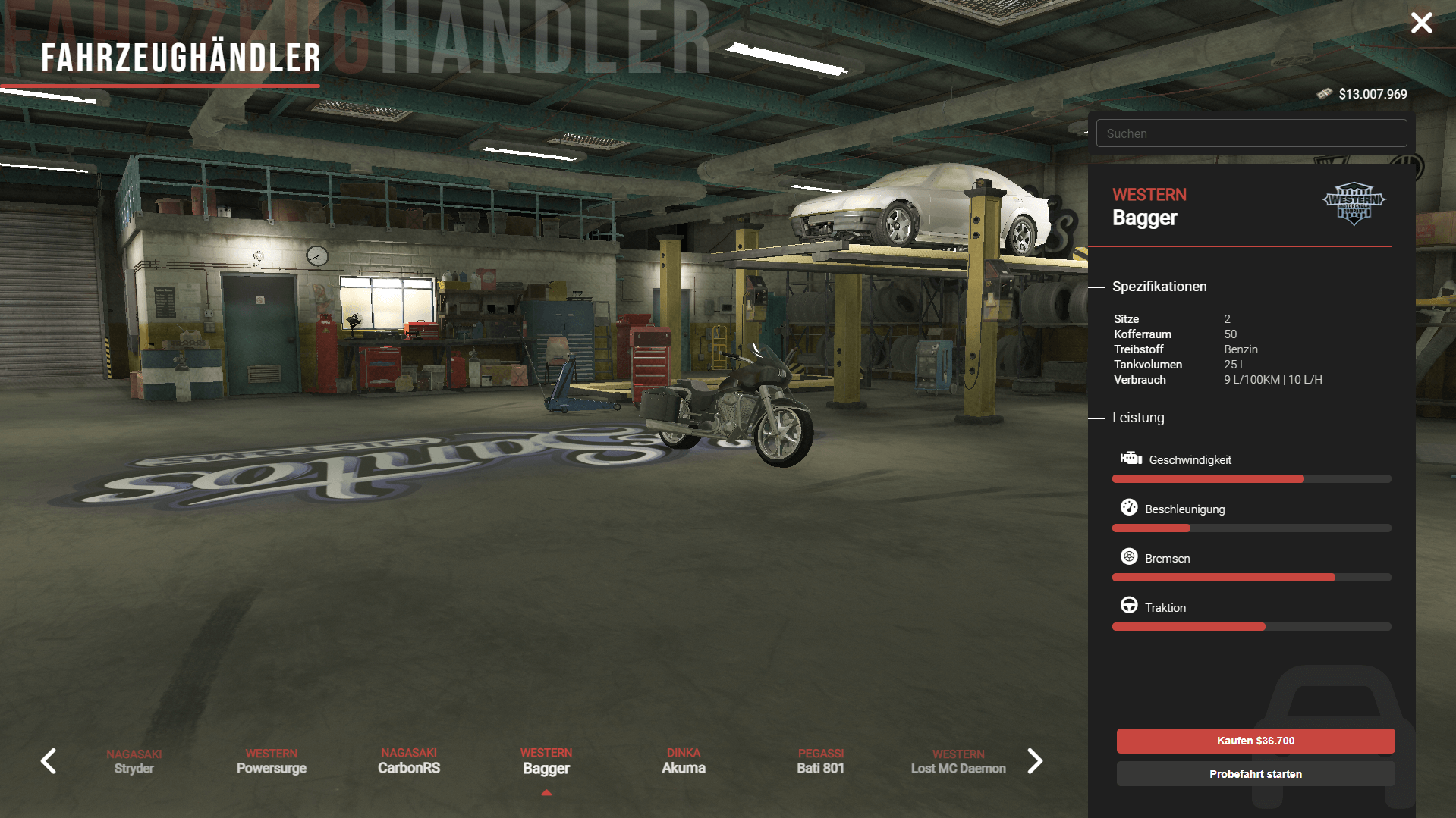 | Lost MC Daemon | Western | $64.700 | 50 | TuningkostenMotor 1: $6.470 | $16.175 | ![]() |