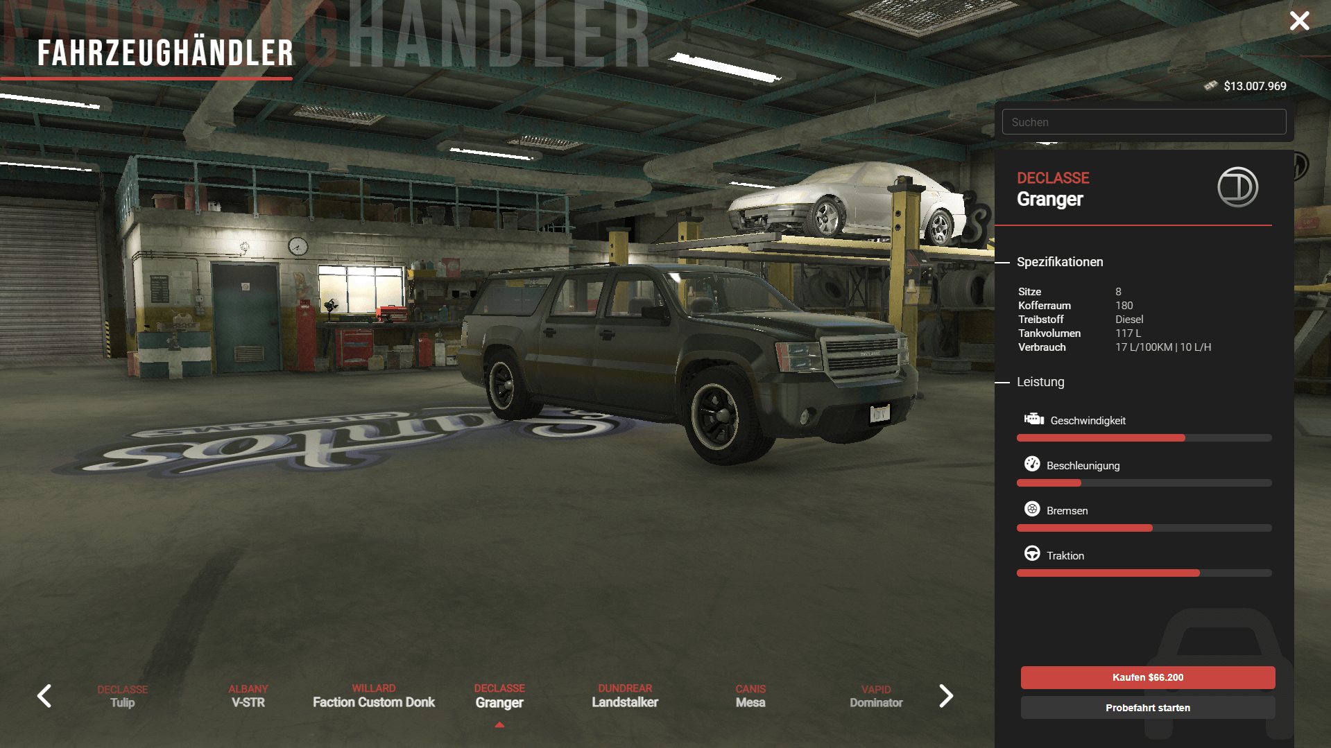 | Faction Custom Donk | Willard | $176.800 | 110 | Spoiler anzeigenMotor 1: $17.680 | $44.200 | ![]() |