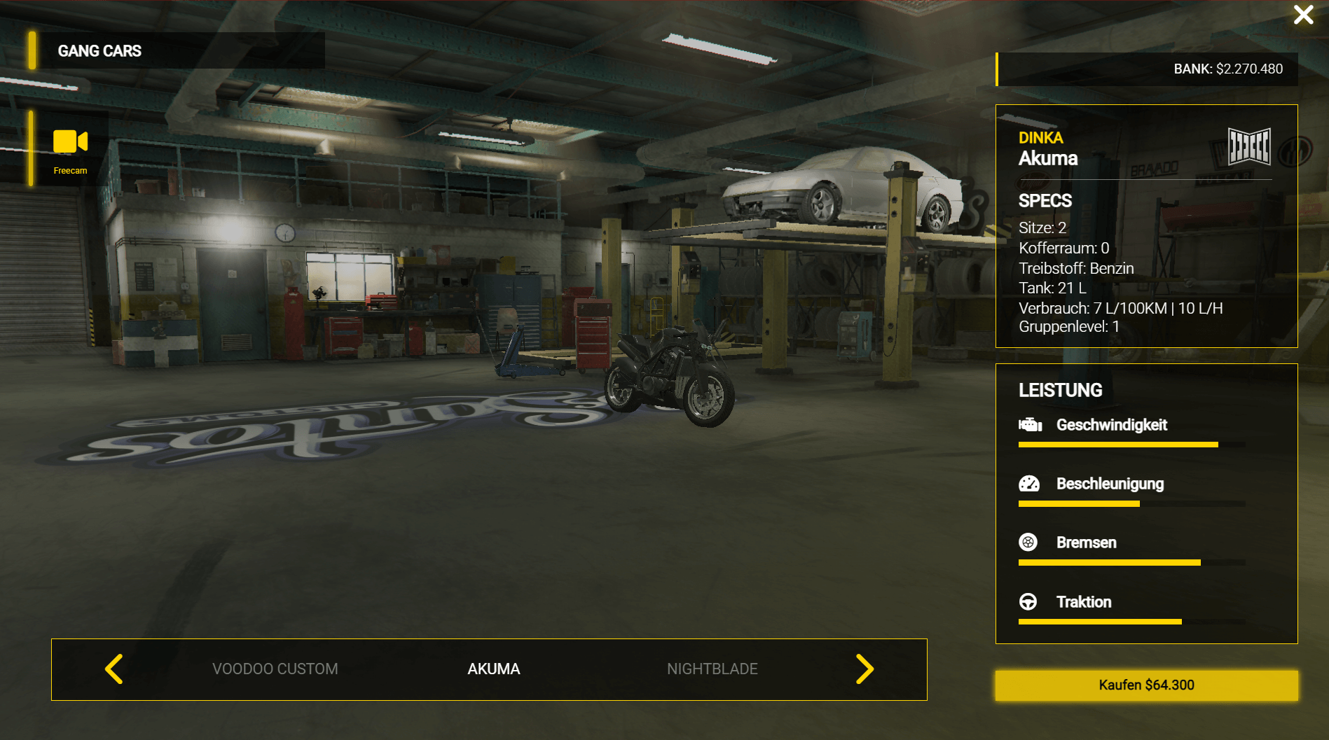 Der Shop für Gruppenfahrzeuge befindet sich im Gebäude des Los Santos Naval Port. An diesem Shop können Gangs und Squads Fahrzeuge erwerben, so lange sie dafür genug Slots in ihrer Gruppe zur Verfügung haben. Um ein Gruppenfahrzeug zu erwerben, muss man Rang 0 einer Gruppe sein. Die Gruppefahrzeuge kann man nicht wieder verkaufen, sie können nur vom Gangleader oder Squadleader gelöscht werden. Solltest du dich zum Kauf eines Gruppenfahrzeuges für deine Gruppe entscheiden, wird das Geld aus der Kasse der jeweiligen Kasse der Gruppe abgezogen.