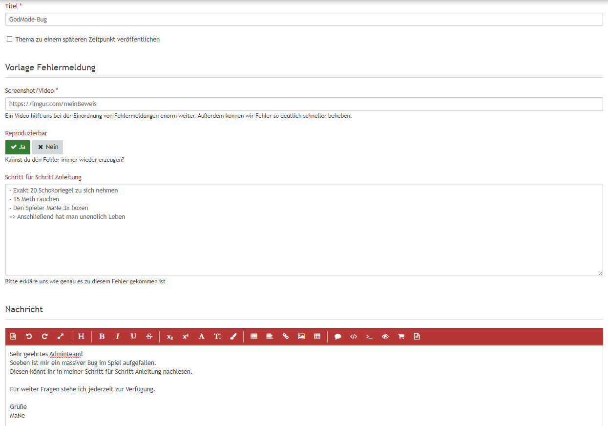 Solltest du also einen Fehler seitens des Servers finden, so bitten wir dich, diesen schnellstmöglich weiterzuleiten.