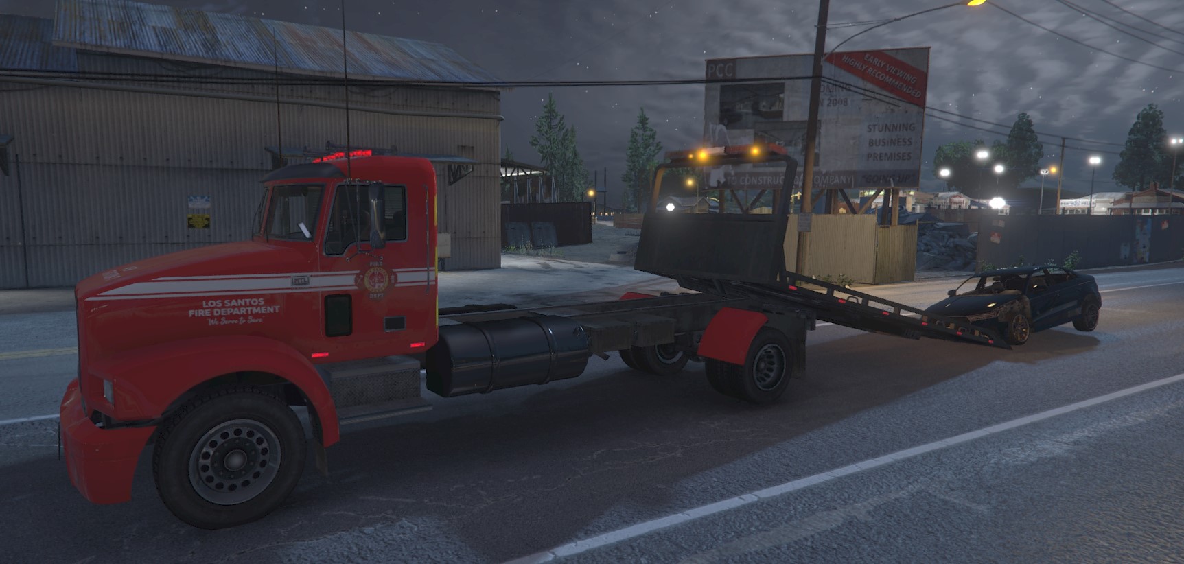 | Das Los Santos Fire Department erhält automatisch eine Kartenmeldung, sobald ein Fahrzeug explodiert. Das betroffene Fahrzeug kann in der Regel mithilfe eines Abschleppwagens geborgen und bei Hayes Autos in Los Santos, dem Schrottplatz in der Grand-Senora-Wüste oder der Abgabestelle in Paleto Bay abgeliefert werden, wodurch sich nach erfolgreichem Abschleppen die anfallenden Reparaturkosten reduzieren. Vom Abschleppen ausgeschlossen sind Lastkraftwagen, Motorräder sowie alle Luft- und Wasserfahrzeuge. |
